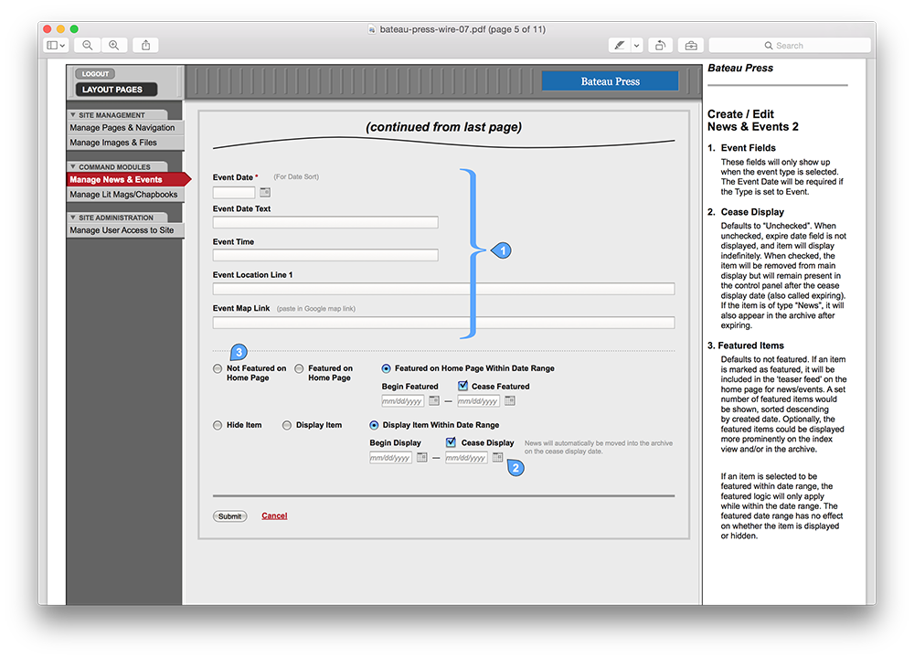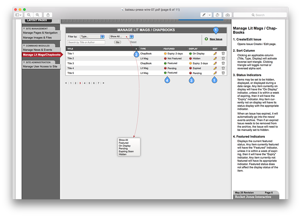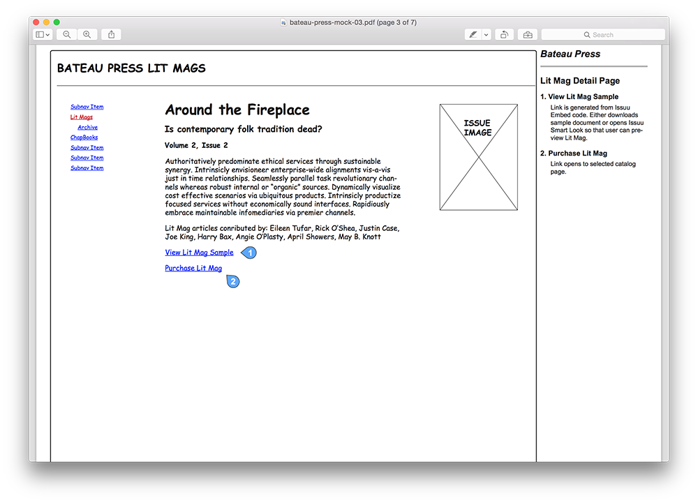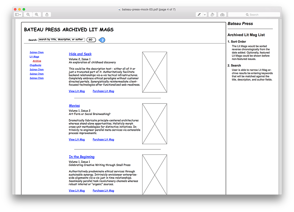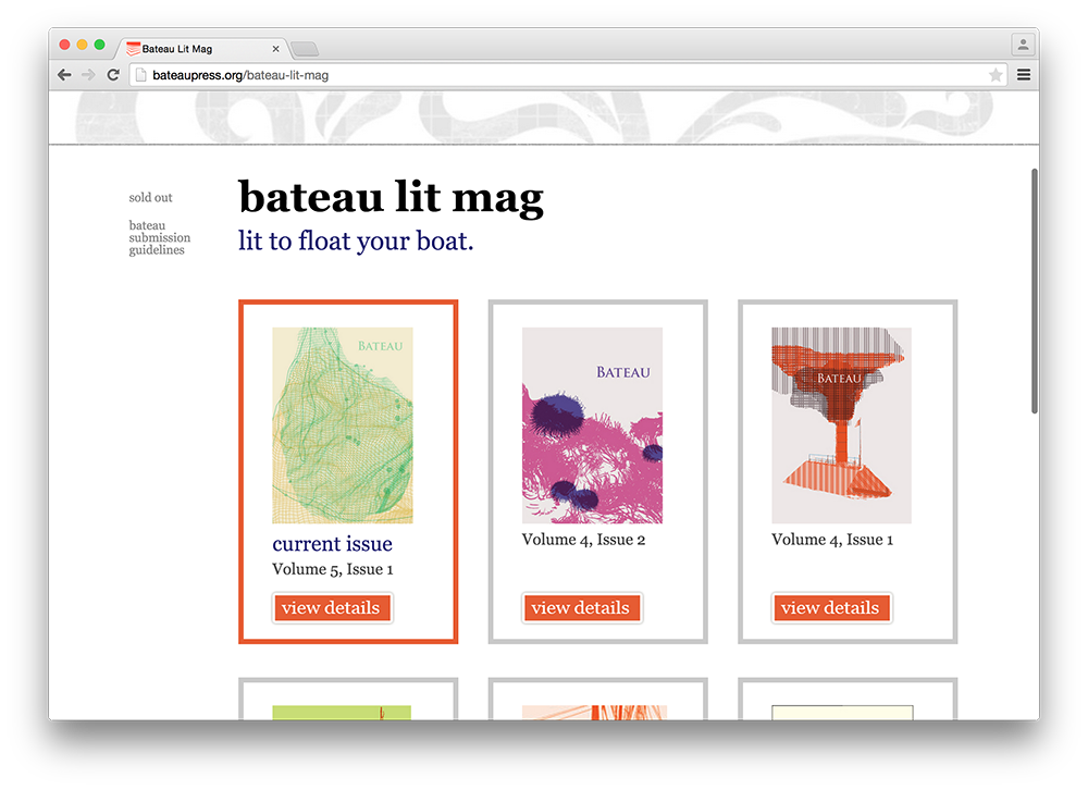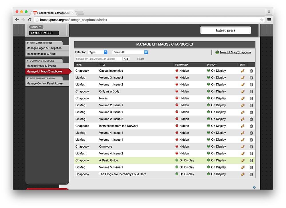 Independent literary magazine publisher that needed a site to assist promoting and selling their journals and chapbooks. Created wireframes and mockups to settle on site structure, then built interface to handle custom features and built html templates from designer’s photoshop files. Built on top of RocketPages.