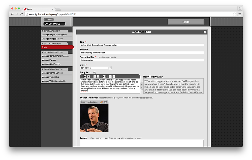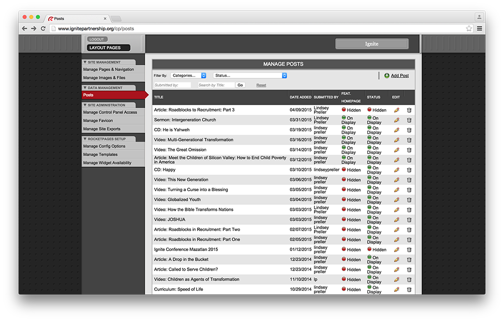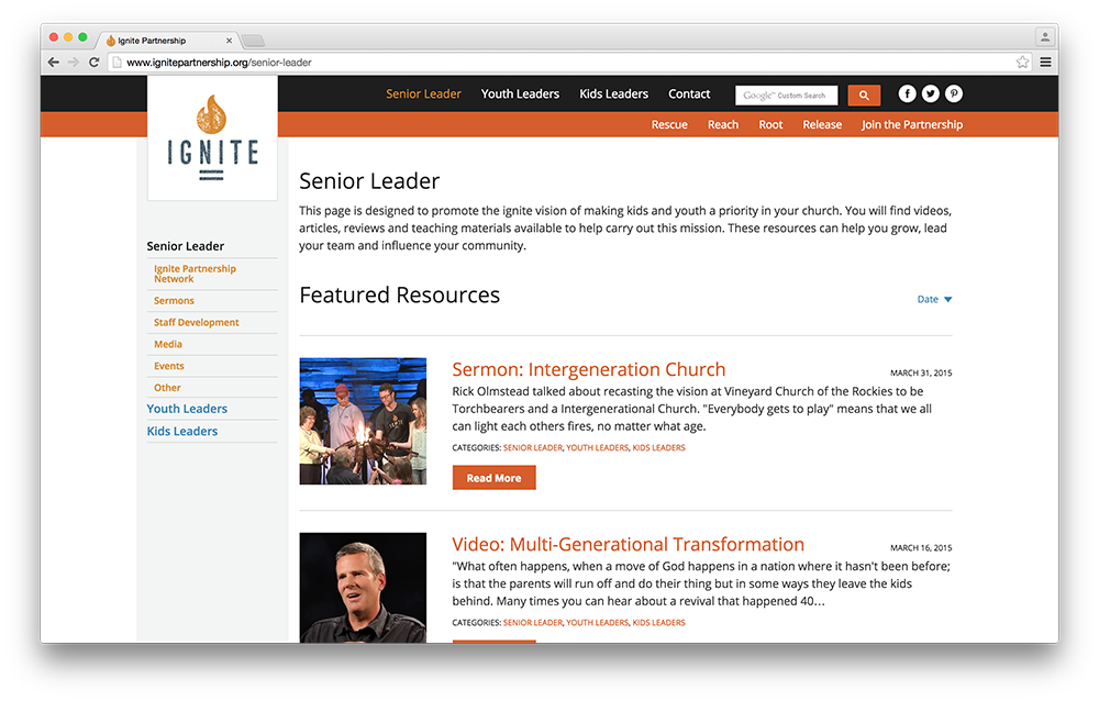 Repository for shared church resources organized by categories and sorted by date with options for featuring. Managed client interactions and developer priorities. Assisted in completing development tasks to meet client expectations. Built on top of RocketPages.